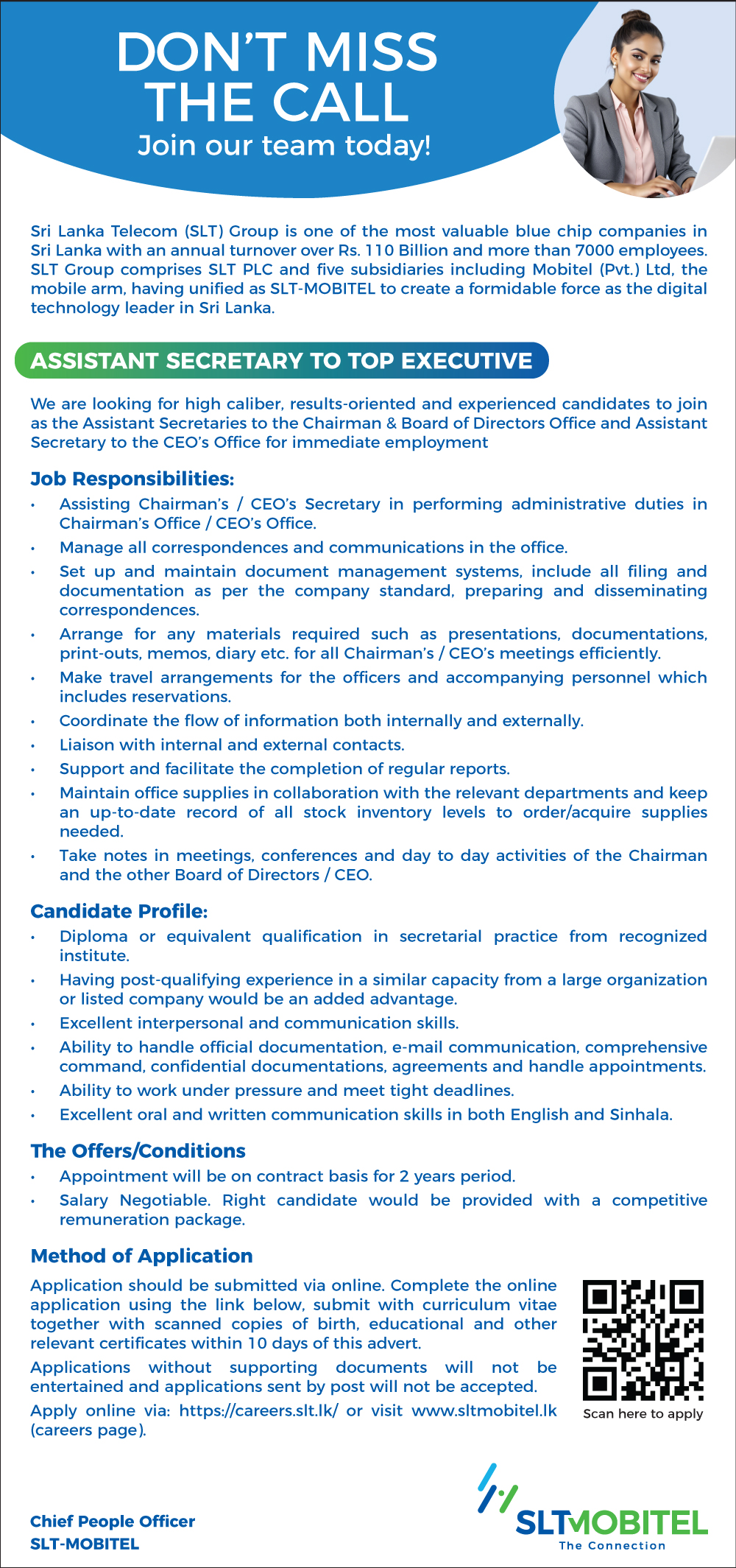 • ASSISTANT SECRETARY TO TOP EXECUTIVE
